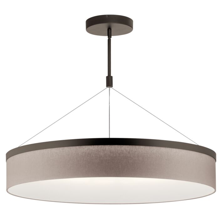 Elevate your dining space with the sleek design of the Marcel pendant light in a warm Olde Bronze finish. A minimalist linen shade in a choice of grey or white appears to float effortlessly, supported by delicate wires that add a touch of whimsy. The energy-efficient LED light provides a clean and modern glow, perfect for kitchens and dining areas.