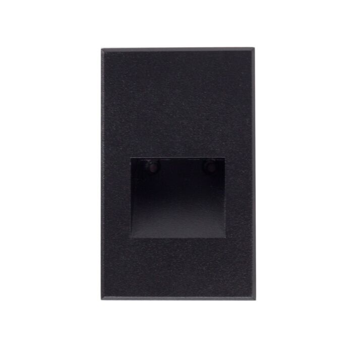 A rectangular recessed lighting fixture with a horizontal orientation, available in a range of finishes including matte black, white powder coat, bronze, and brushed nickel, featuring a die-cast aluminum casing that optically controls the light output and completely hides the light source, suitable for installation as a step light or courtesy light, and although designed for outdoor applications it can also be used indoors, however it is designed to fit into a standard single gang electrical box.