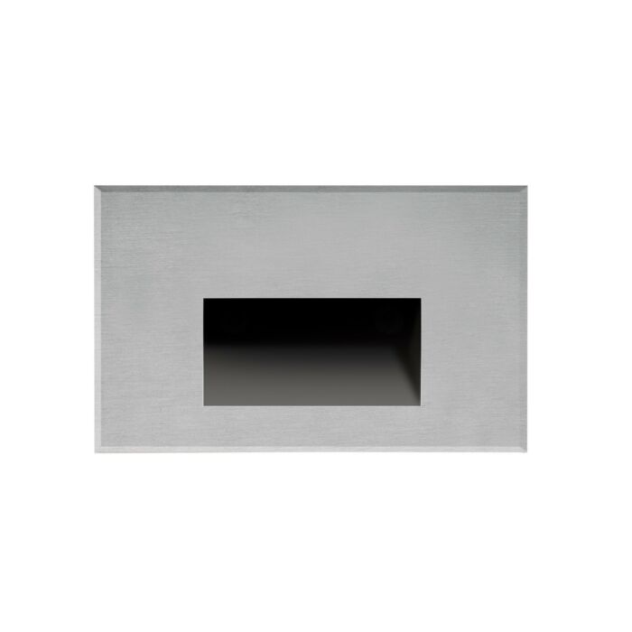 A sleek rectangular recessed lighting fixture available in a range of stylish finishes including matte black, crisp white powder, rich bronze, and sophisticated brushed nickel, featuring an optically engineered light control system within a sturdy die-cast aluminum casing that cleverly hides the light source, making it perfect for use as step lighting or ambient courtesy lighting, with the added versatility of being suitable for both outdoor and indoor applications, although it is specifically designed to fit snugly into a standard single gang electrical box.