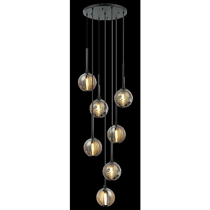 This 7-Light Pendant From Matteo Comes In A Matte Black Finish and is a part of the Jemyca collection. This product uses 7 x 40W G9 120V bulb(s) Dry rated. Can be used in dry environments like living rooms or bedrooms. Made from Metal. Product Specification Sheet
