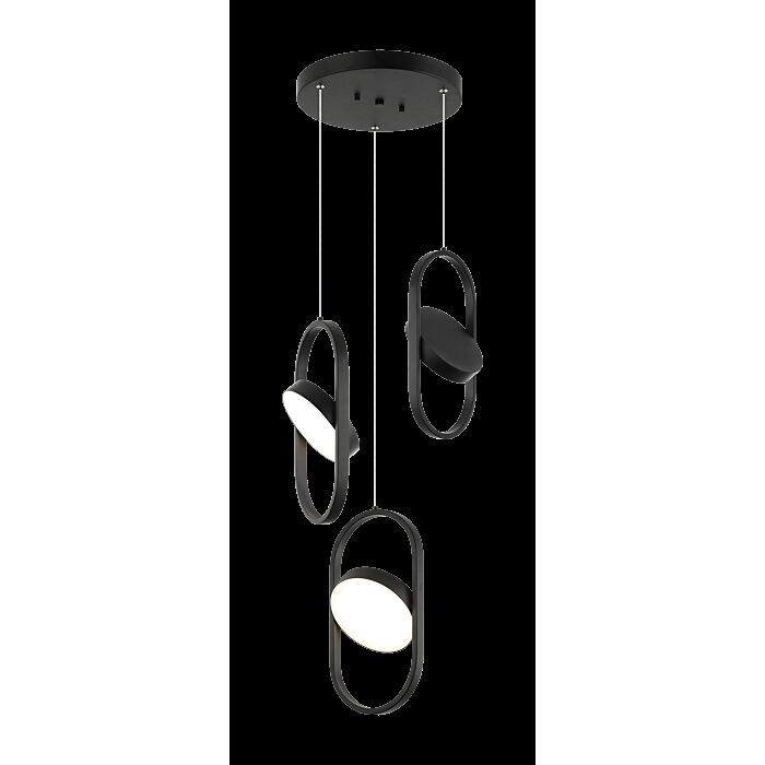 This 3-Light Pendant From Matteo Comes In A Black Finish and is a part of the Kennedy collection. This product uses 3 x 30W LED 120V bulb(s) Dry rated. Can be used in dry environments like living rooms or bedrooms. Made from Metal. Product Specification Sheet