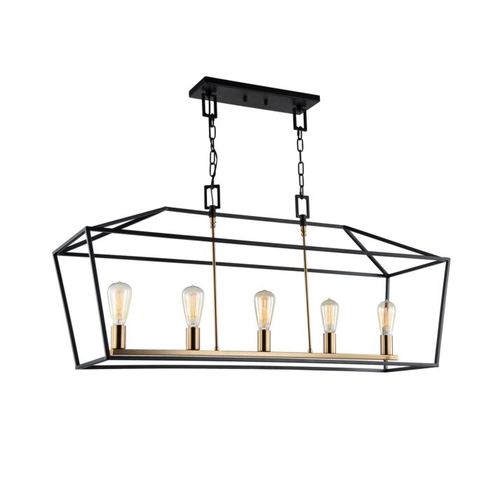 This 5-Light Chandelier from Matteo Lighting is part of the Scatola collection. It comes in a Rusty Black & Aged Gold Brass accents finish.- Measures 19.00" H x 44.00" L x 12.00" W