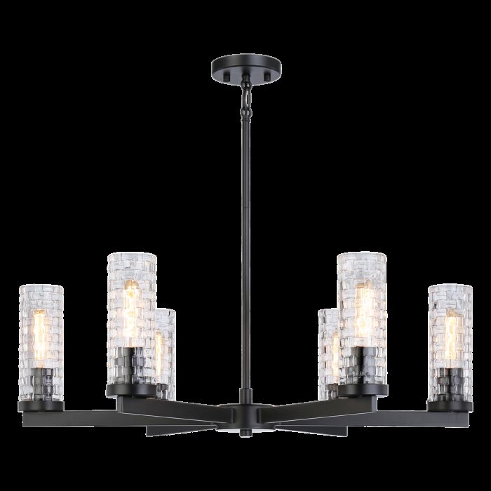 This 6-Light Pendant From Matteo Comes In A Black Finish and is a part of the Weaver collection. This product uses 6 x 60W Medium Base-E26 120V bulb(s) Dry rated. Can be used in dry environments like living rooms or bedrooms. Made from Metal. Product Specification Sheet