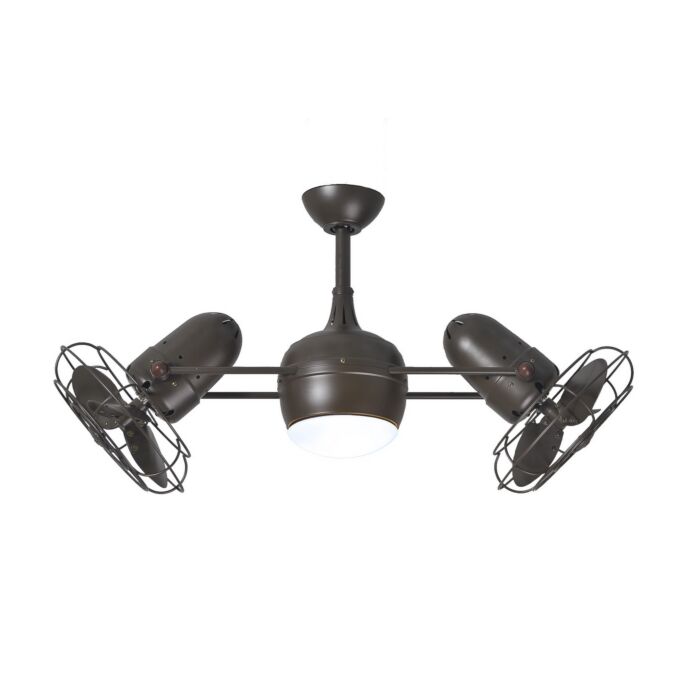 With clean, fluid lines, the Dagny LK 360° rotational fan is a striking centerpiece in any space. Its movement about its cylindrical center housing is smooth and quiet. Dagny LK's dual fan heads can be infinitely positioned in 180-degree arcs for optimum and customized air movement. As the angle between the fan heads and the horizontal support rods is increased, so does the speed of Dagny LK's axial rotation. Matthews rotational fans circulate heat and air conditioning more efficiently than traditional paddle fans. Constructed from cast aluminum and heavy stamped steel, the Dagny LK carries a limited lifetime warranty. This model is also available without a light kit as the Dagny.