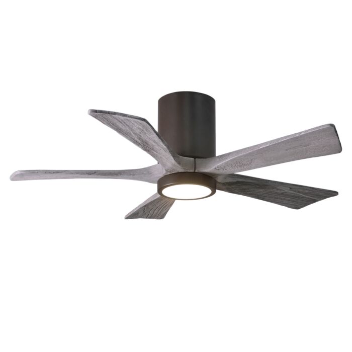 The Irene-5HLK ceiling-mount fan is rustic, yet strikingly modern with five neatly joined, solid wood matte black, matte white, walnut, or barn wood tone blades. A cylindrical motor housing complements its minimal profile. Irene-5HLK is streamline while still appearing warm and natural. Constructed of cast aluminum and heavy stamped steel, the Irene-5HLK has a limited lifetime warranty.