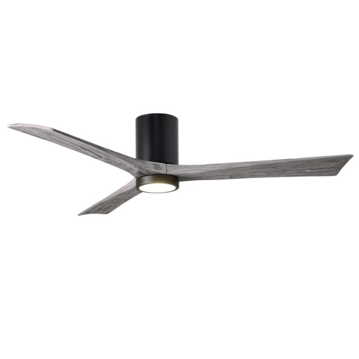The Irene-3HLK ceiling-mount fan is rustic, yet strikingly modern with three neatly joined, solid wood matte black, matte white, walnut, or barn wood tone blades. A cylindrical motor housing complements its minimal profile. Irene-3HLK is streamline while still appearing warm and natural. Constructed of cast aluminum and heavy stamped steel, the Irene-3HLK has a limited lifetime warranty.