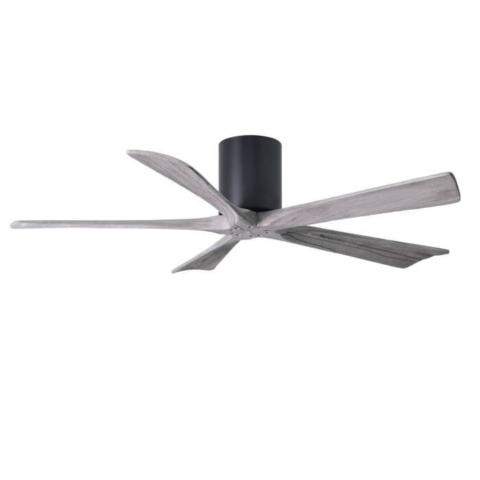 The Irene-5H ceiling-mount fan is rustic, yet strikingly modern with five neatly joined, solid wood, matte black, matte white, walnut, or barn wood tone blades. A cylindrical motor housing complements its minimal profile. Irene-5H is streamline while still appearing warm and natural. Constructed of cast aluminum and heavy stamped steel, the Irene-5H has a limited lifetime warranty.