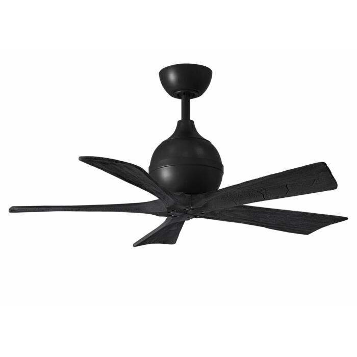 Short Description: The Irene 42" Ceiling fan is a prudent addition to any home. You are sure to enjoy the Matte Black with Matte Black blades, and with 6-Speeds, your home will stay cool during even the warmest months. This Ceiling fan includes a Remote Control, Wall Control for controlling the fan. On its highest setting, you can enjoy a CFM of 4260.98 at 229 RPM. This fan includes 5 blades made from Solid Wood.