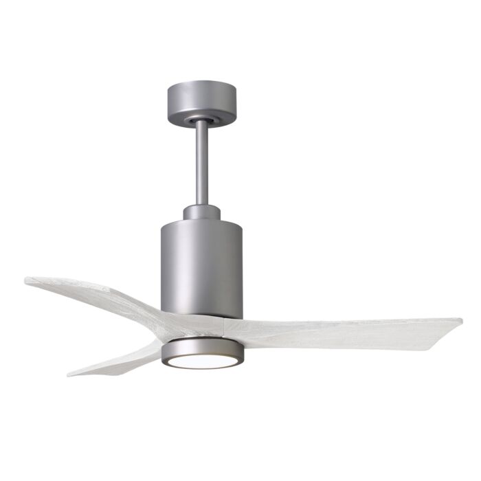 Short Description: The Patricia 42" Ceiling fan is a sensible addition to any home. You are sure to enjoy the Brushed Nickel with Matte White blades, and with 6-Speeds, your home will stay cool during even the warmest months. This Ceiling fan includes a Remote Control, Wall Control for controlling the fan. On its highest setting, you can enjoy a CFM of 4285.66 at 232 RPM. This fan includes 3 blades made from Solid Wood. Additionally, this fan comes with an Integrated light kit that uses Integrated LED bulbs.