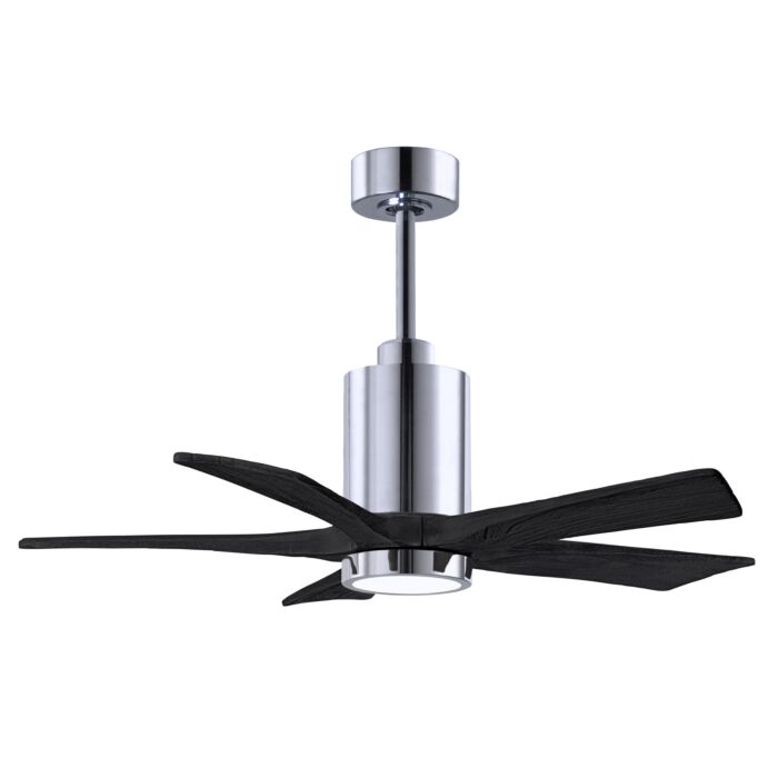 Short Description: The Patricia 42" Ceiling fan is a rational addition to any home. You are sure to enjoy the Polished Chrome with Matte Black blades, and with 6-Speeds, your home will stay cool during even the warmest months. This Ceiling fan includes a Remote Control, Wall Control for controlling the fan. On its highest setting, you can enjoy a CFM of 4385.74 at 221 RPM. This fan includes 5 blades made from Solid Wood. Additionally, this fan comes with an Integrated light kit that uses Integrated LED bulbs.