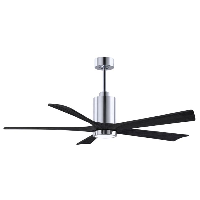 Short Description: The Patricia 60" Ceiling fan is a thoughtful addition to any home. You are sure to enjoy the Polished Chrome with Matte Black blades, and with 6-Speeds, your home will stay cool during even the warmest months. This Ceiling fan includes a Remote Control, Wall Control for controlling the fan. On its highest setting, you can enjoy a CFM of 5546.78 at 87 RPM. This fan includes 5 blades made from Solid Wood. Additionally, this fan comes with an Integrated light kit that uses Integrated LED bulbs.