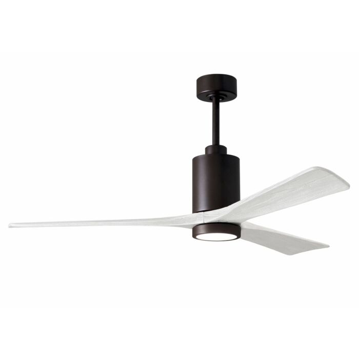 Short Description: The Patricia 60" Ceiling fan is a sensible addition to any home. You are sure to enjoy the Textured Bronze with Matte White blades, and with 6-Speeds, your home will stay cool during even the warmest months. This Ceiling fan includes a Remote Control, Wall Control for controlling the fan. On its highest setting, you can enjoy a CFM of 6832.64 at 156 RPM. This fan includes 3 blades made from Solid Wood. Additionally, this fan comes with an Integrated light kit that uses Integrated LED bulbs.