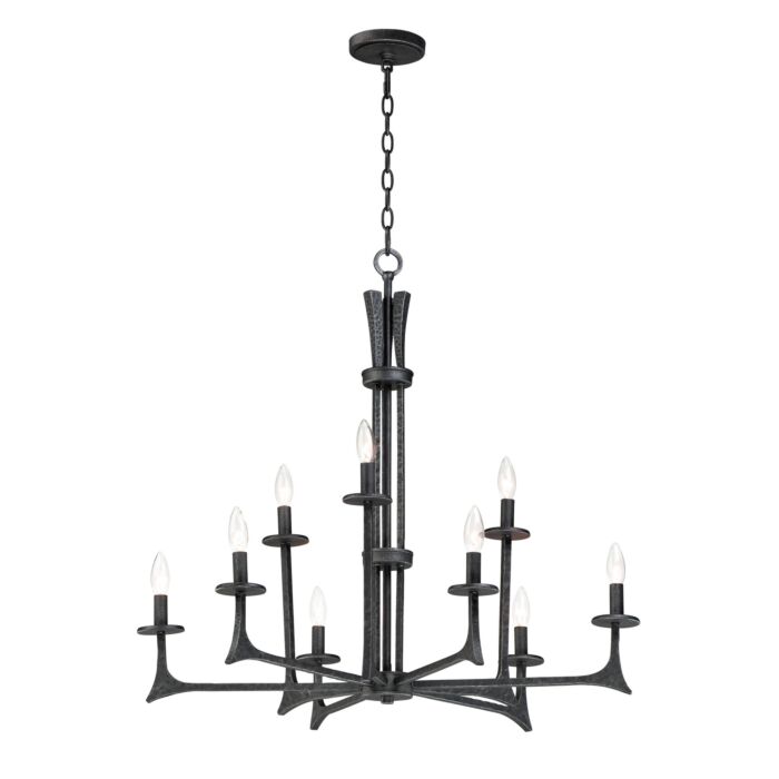 This Anvil 9-Light Chandelier in Natural Iron is manufacturered by Maxim Lighting- Measures 29.75"H x 34.0 L x 34.00" W