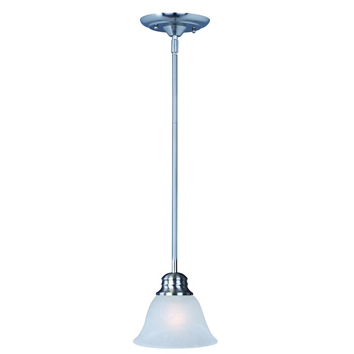This Malaga 1-Light Mini Pendant in Satin Nickel is manufacturered by Maxim Lighting- Measures 5.25"H x 6.0 L x 6.00" W