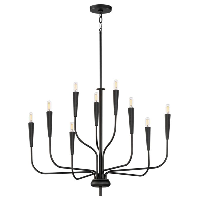 This 9-Light Multi-Tier Chandelier from Maxim Lighting comes in a Black finish.- It measures 24 high x 32" long x 32" wide.