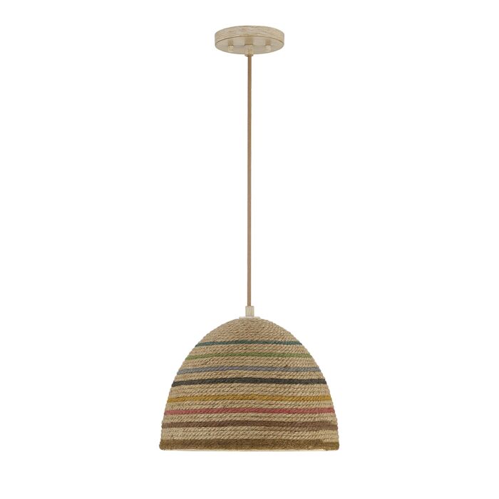 This 1-Light Pendant is from Meridian and comes in a Matte White and Natural Rattan Color finish.- This 120V light uses E26 bulbs.