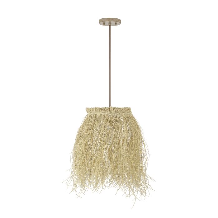 This 1-Light Pendant is from Meridian and comes in a Matte White and Natural Rattan finish.- This 120V light uses E26 bulbs.