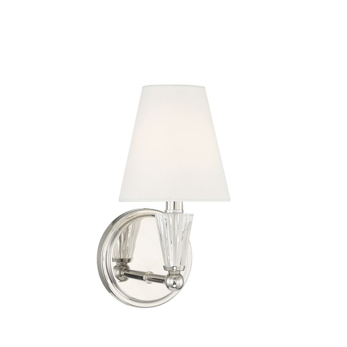 This 1-Light Wall Sconce is from Meridian and comes in a Polished Nickel finish.- This 120V light uses E12 bulbs.