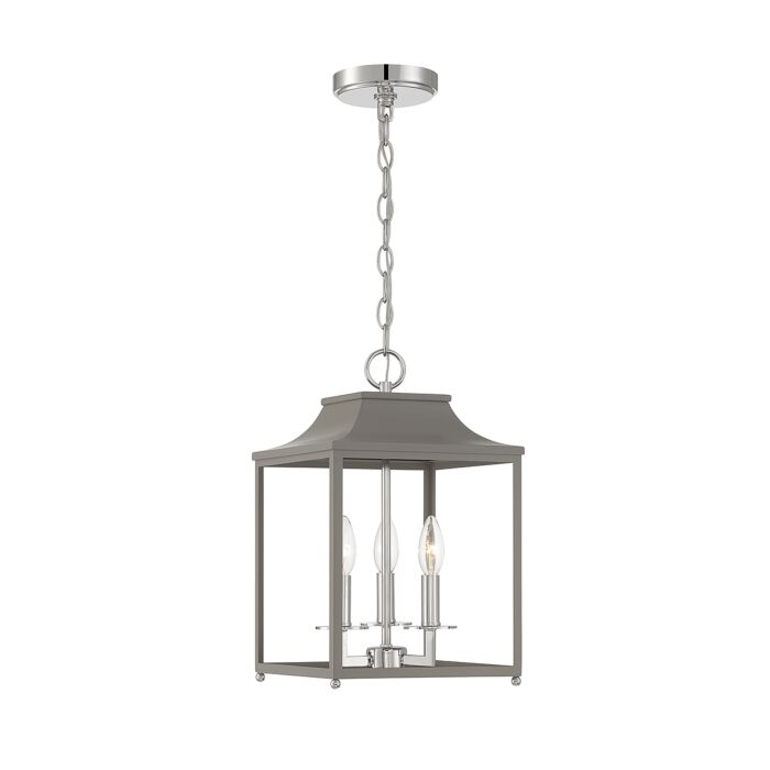 This 3-Light Pendant is from Meridian and comes in a Gray with Polished Nickel finish.- This 120V light uses E12 bulbs.