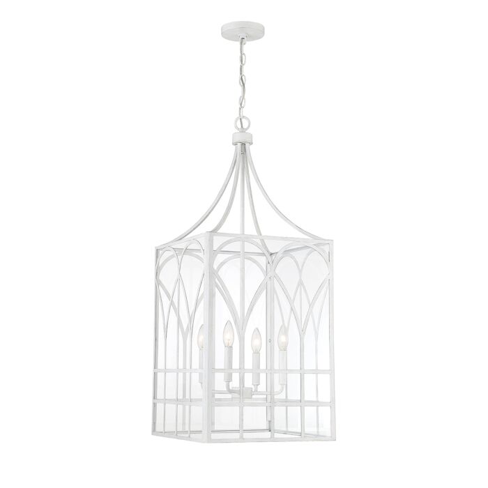 This 4-Light Pendant is from Meridian and comes in a Distressed White finish.- This 120V light uses E12 bulbs.