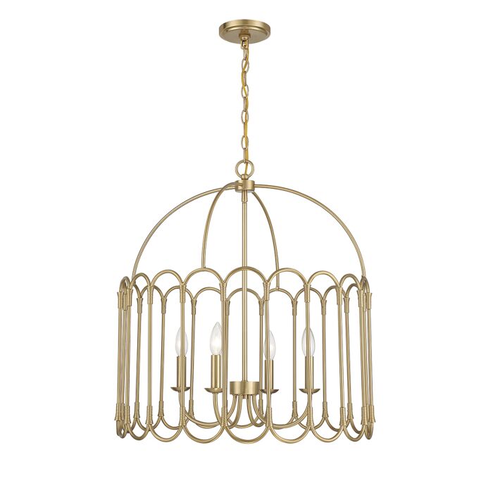 This 4-Light Pendant is from Meridian and comes in a Natural Brass finish.- This 120V light uses E12 bulbs.