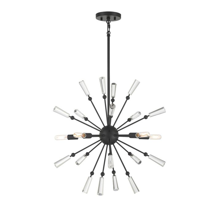 This 5-Light Pendant is from Meridian and comes in a Matte Black finish.- This 120V light uses E12 bulbs.