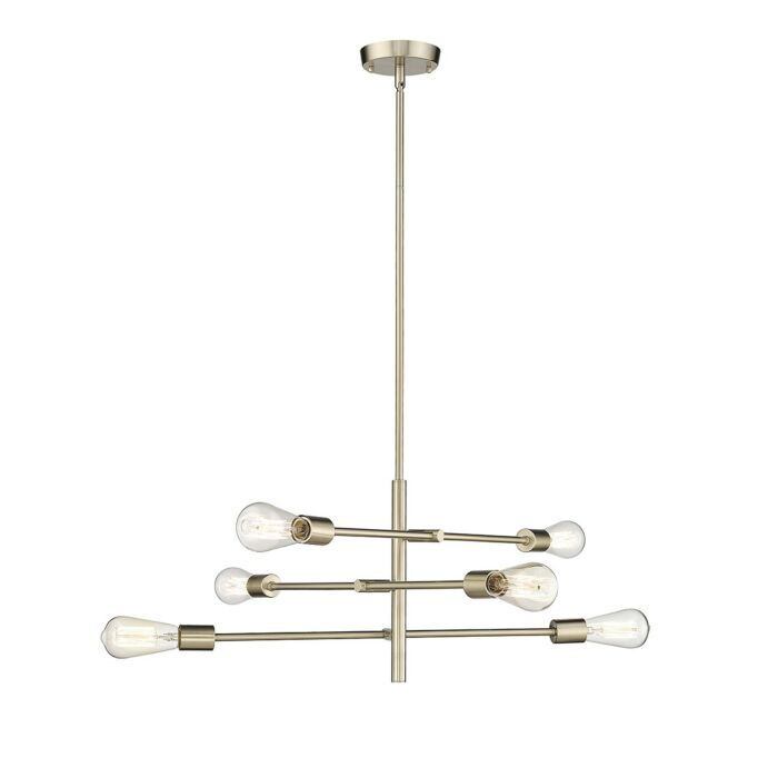 This 6-Light Pendant from Millennium is part of the Decco collection. It comes in a Modern Gold finish.- Measures 11.88" H x 29.50" W