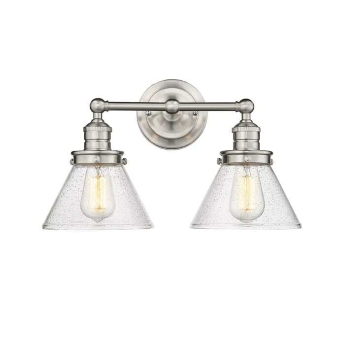 This 2-Light Vanity Light from Millennium is part of the Eyden collection. It comes in a Brushed Nickel finish.- Measures 11.25" H x 9.00" L x 18.38" W
