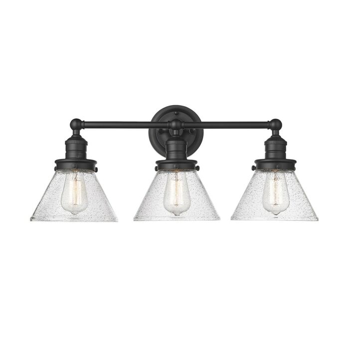 This 3-Light Vanity Light from Millennium is part of the Eyden collection. It comes in a Matte Black finish.- Measures 11.25" H x 9.00" L x 25.88" W