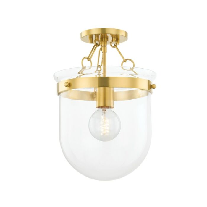 Dunbar One Light Semi Flush Mount in Aged Brass by Mitzi