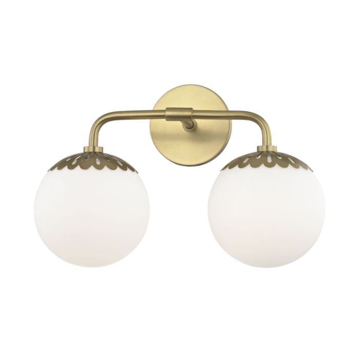 Paige Two Light Bath and Vanity in Aged Brass by Mitzi