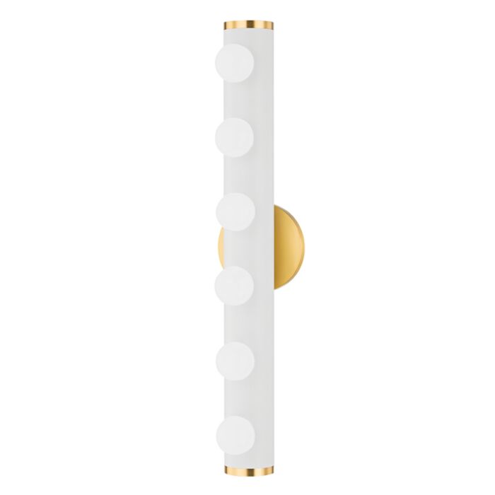 This Penny 6-Light Bathroom Vanity Light Bracket in Aged Brass with Textured White is manufacturered by Mitzi- Measures 23"H x 4.75" W