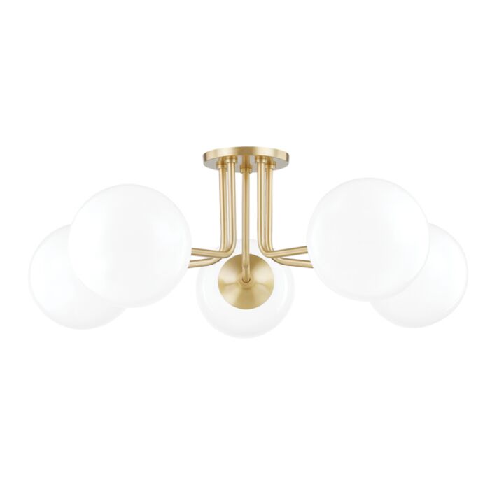 Stella Five Light Semi Flush Mount in Aged Brass by Mitzi