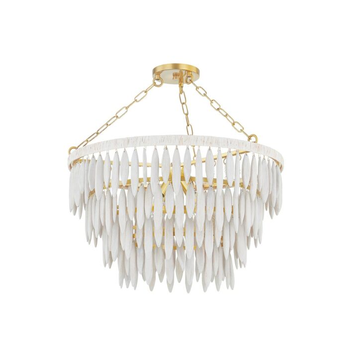 Tiffany Four Light Chandelier in Aged BrassTextured Cream by Mitzi