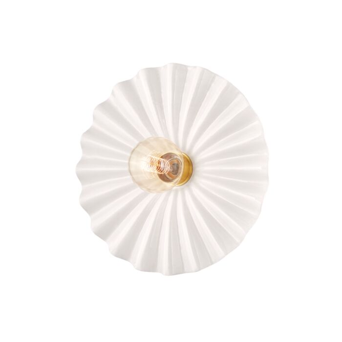 Tinsley One Light Flush Mount in Aged BrassCeramic Gloss Cream by Mitzi