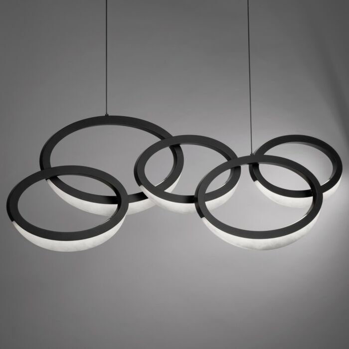 Interlocking perfect rings with stunning Spanish alabaster diffusers make this elaborate luminaire a perfect fit for any interior. Each ring casts an eye catching array of ambient light.