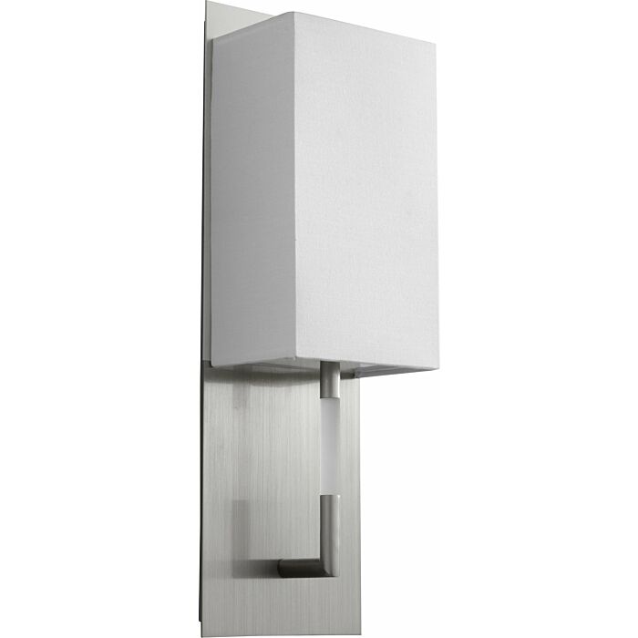 Epoch LED Wall Sconce in Satin Nickel W White Linen by Oxygen