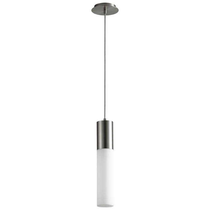 This Magnum 1-Light LED Pendant in Satin Nickel is manufacturered by Oxygen- Measures 18"H x 3.50" W