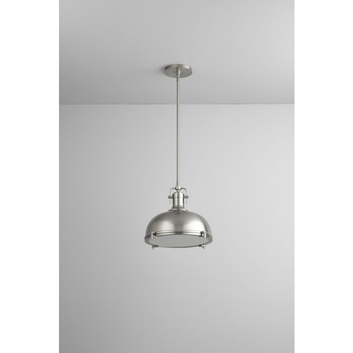 This Vida 1-Light LED Pendant in Satin Nickel is manufacturered by Oxygen- Measures 14"H x 16.50" W