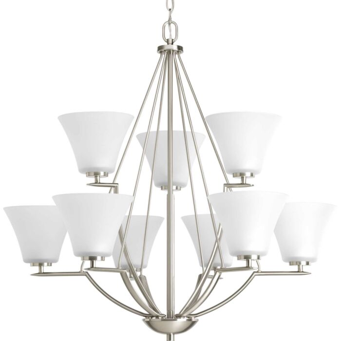 This 9-Light Chandelier from Progress Lighting is part of the Bravo collection. It comes in a Brushed Nickel finish.- Measures 31.00" H x 32.00" L x 32.00" W