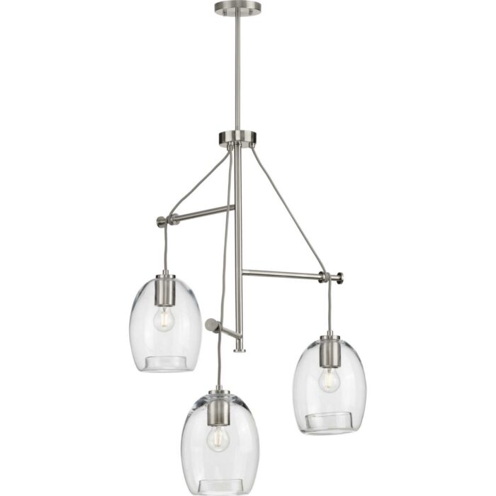 This 3-Light Pendants from Progress Lighting is part of the Caisson collection. It comes in a Brushed Nickel finish.- Measures 35.00" H x 30.38" L x 30.38" W