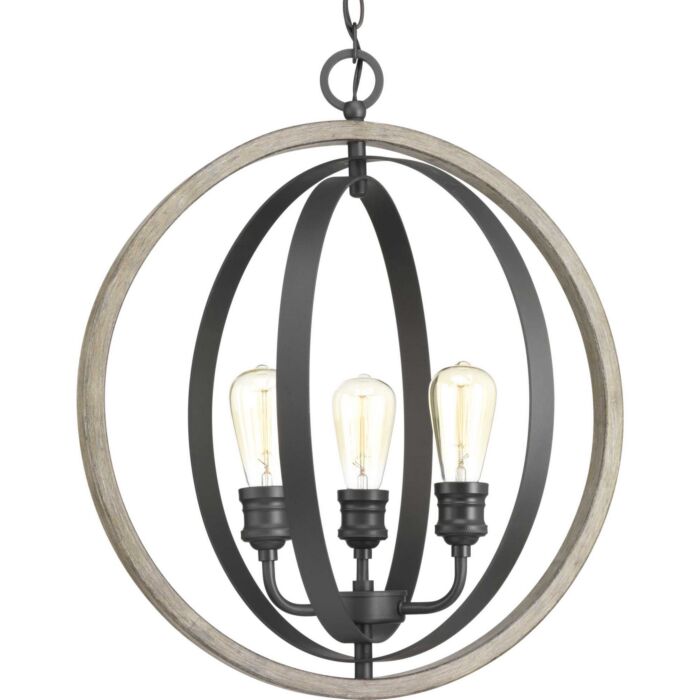 The Conestee collection three-light pendant features a stunning armillary-style frame. Dual tone finish combination of Graphite with weathered gray accents. While Conestee is ideal for Rustic Farmhouse or Urban Industrial home environments, it can also be paired with a number of Coastal-inspired fixtures to complement natural wood materials.