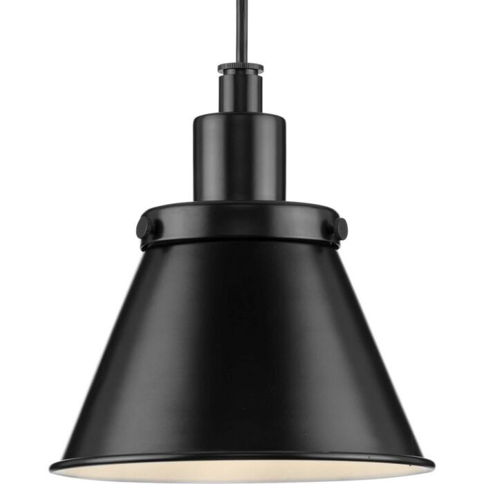 This 1-Light Pendants from Progress Lighting is part of the Hinton collection. It comes in a Matte Black finish.- Measures 8.62" H x 8.25" L x 8.25" W
