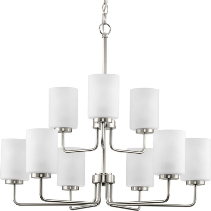 This 9-Light Chandelier from Progress Lighting is part of the Merry collection. It comes in a Brushed Nickel finish.- Measures 24.00" H x 28.00" L x 28.00" W