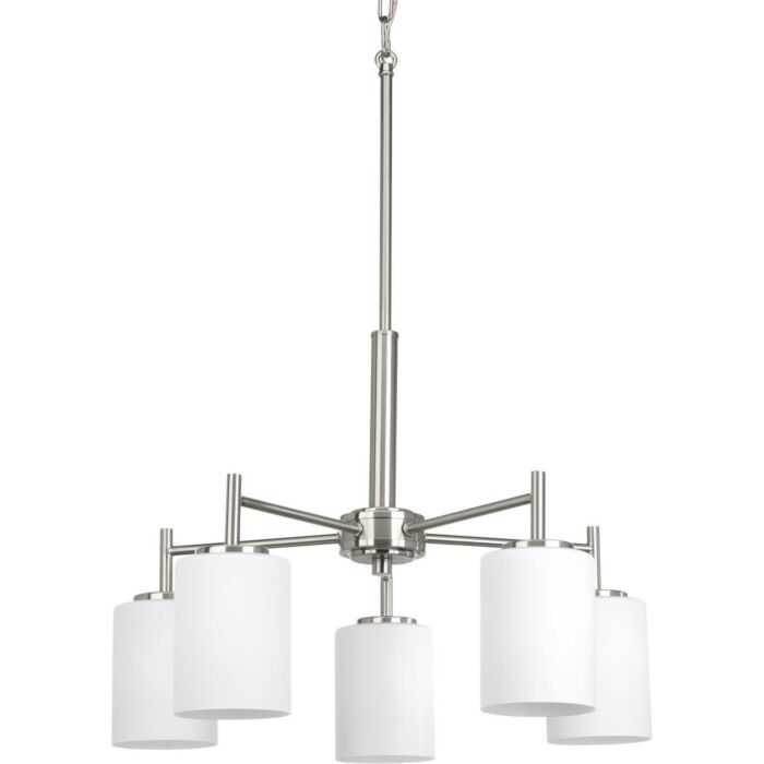 This 5-Light Chandelier from Progress Lighting is part of the Replay collection. It comes in a Brushed Nickel finish.- Measures 19.63" H x 21.00" L x 21.00" W