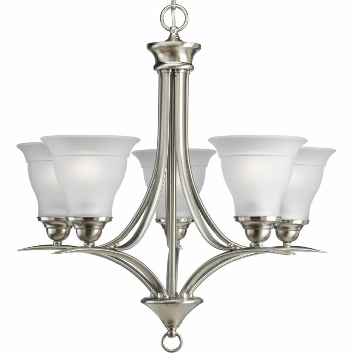 This 5-Light Chandelier from Progress Lighting is part of the Trinity collection. It comes in a Brushed Nickel finish.- Measures 24.50" H x 23.00" L x 23.00" W