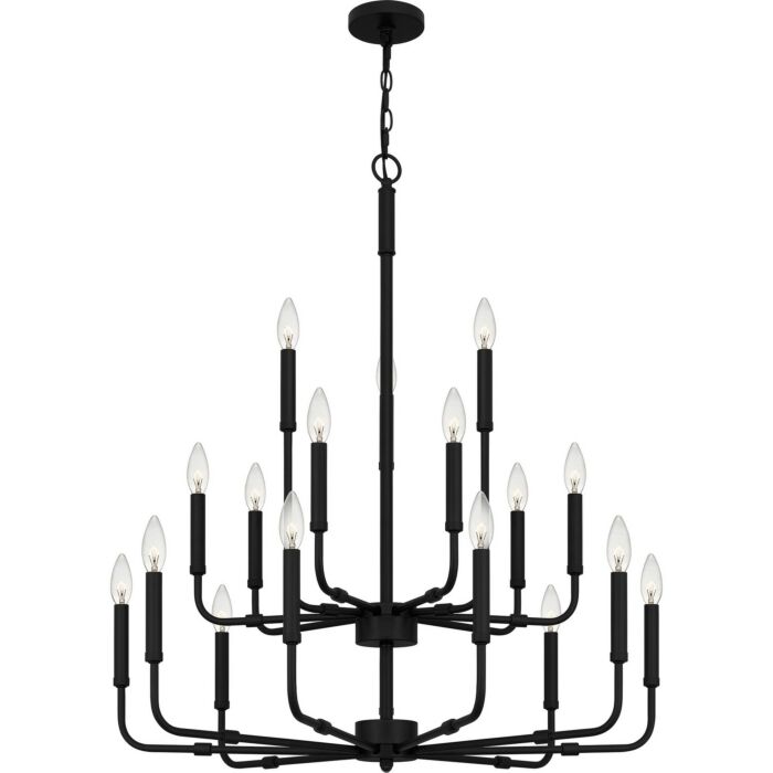 This 18-Light Chandelier from Quoizel is part of the Abner collection. It comes in a Matte Black finish.- ETL certified.