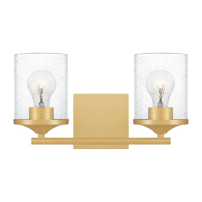 This 2-Light Bathroom Vanity Light from Quoizel is part of the Abner collection. It comes in a Aged Brass finish.- Measures 7.75" H x 14.00" W