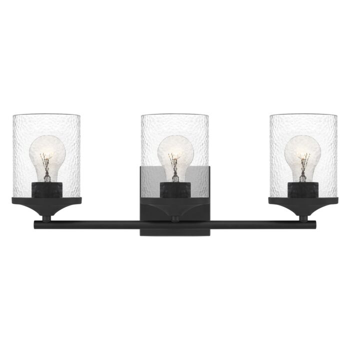 This 3-Light Bathroom Vanity Light from Quoizel is part of the Abner collection. It comes in a Matte Black finish.- Measures 7.75" H x 21.00" W