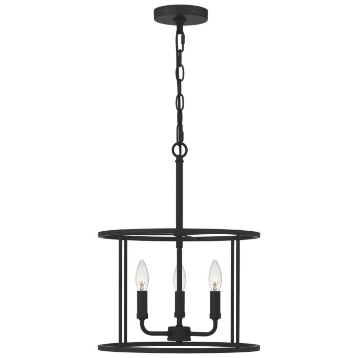 This 3-Light Pendant from Quoizel is part of the Abner collection. It comes in a Matte Black finish.- Measures 18.00" H x 14.00" L x 14.00" W